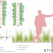 Ours is a lush forest-garden, attractive for life and efficient in every aspect – botanical associations, water saving, integrated pest management – therefore predisposed to prosper over time thanks to the circular virtuosity of the processes that regulate it. From the observation of earthworms, a symbol of soil fertility, the sinuous shapes of the walkways and spiral passages are born which introduce the visitor to an itinerary dotted with points of interest: a lake with bank vegetation, mammal dens among the bushes, birds’ nests hanging from trees, clearings and rest areas in the open greenery. Stigma, in fact, does not focus its attention only on insects, but is a “widespread” bug hotel ready to also welcome mammals and birds, because nature does not work in watertight compartments but aims for interaction and balance.