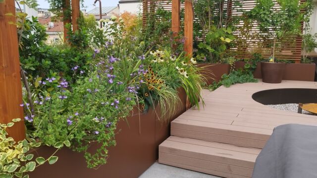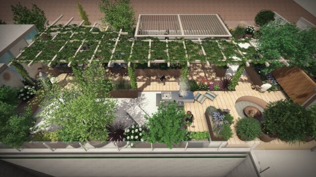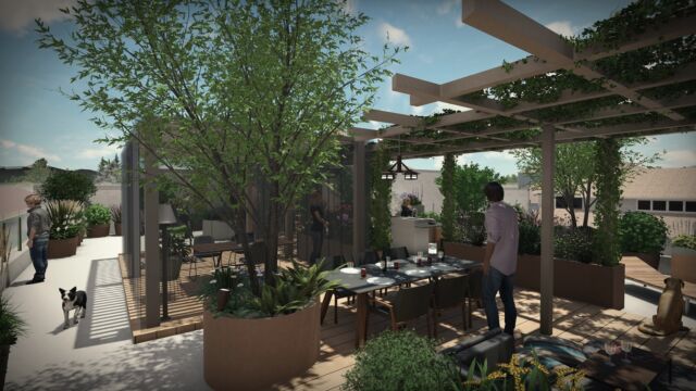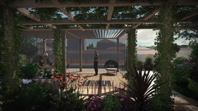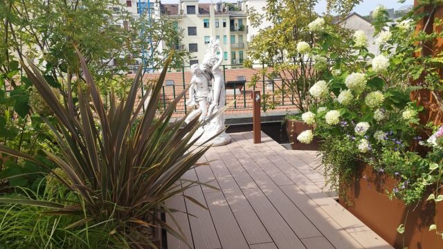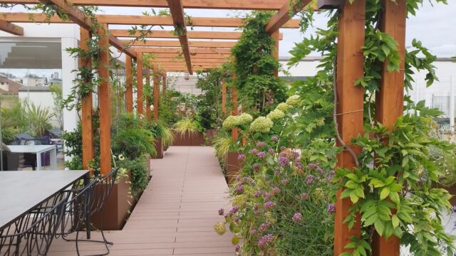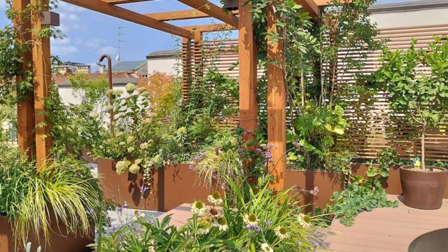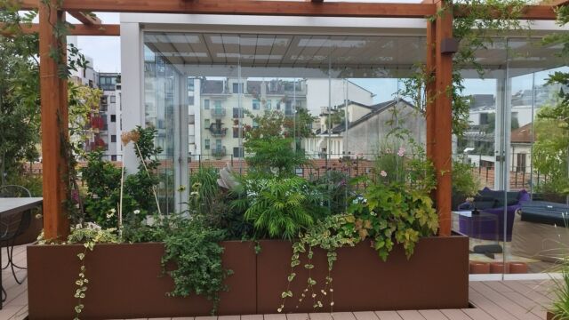 La sfida non è scevra da difficoltà : la superficie è molto vasta e assolata, è necessario schermare lo spazio dagli sguardi dei palazzi vicini, bisogna bilanciare in modo attento i carichi.