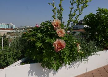 Il requisito principale è che l’ambiente fornisca privacy dai molti palazzi circostanti e che sia immerso nel verde, un vero e proprio giardino pensile con tanto di alberi, arbusti e fioriture stagionali. Un’ulteriore richiesta riguarda il lato nord del terrazzo, dove si trova un locale vetrato adibito a studio.