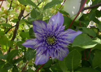 Qui l’intervento richiesto è di “arredare” lo spazio esterno con essenze rampicanti e ricadenti vigorose che hanno la funzione di mascherare una brutta inferriata e i tetti confinanti.