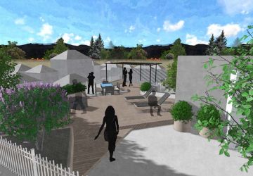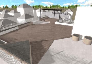 Dopo un rilievo accurato del sito e una fase di analisi preliminare, lo studio prepara una soluzione mirata che soddisfa in pieno le esigenze della committenza. Nella zona sud, tra gli elementi progettuali sviluppati figurano una grande pergola in ferro e un deck di 35 mq che taglia il terrazzo in modo trasversale.