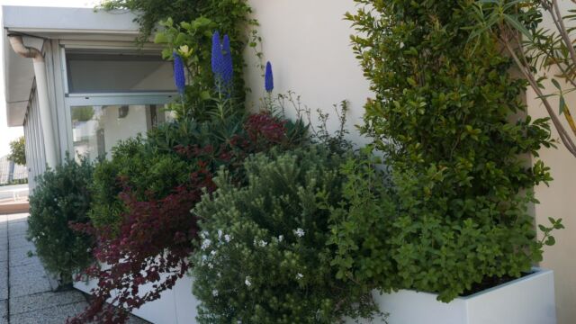 L’idea viene poi sviluppata nel dettaglio vaso per vaso per massimizzare le masse verdi e ottenere un miscela di essenze dal portamento differente (alberi, rampicanti, arbusti, graminacee, ecc…) che hanno lo scopo di creare movimento e sorprendere con nuove fioriture, profumi e colori inaspettati in ogni stagione.