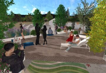 Un terrazzo di grandi dimensioni (circa 130 mq) al settimo e ultimo piano di un palazzo. I committenti, che abitano al sottostante sesto piano, esprimono la volontĂ di creare nel lato sud un solarium con zona living open-air da sfruttare soprattutto in estate ma che risulti appagante alla vista anche nelle stagioni intermedie.