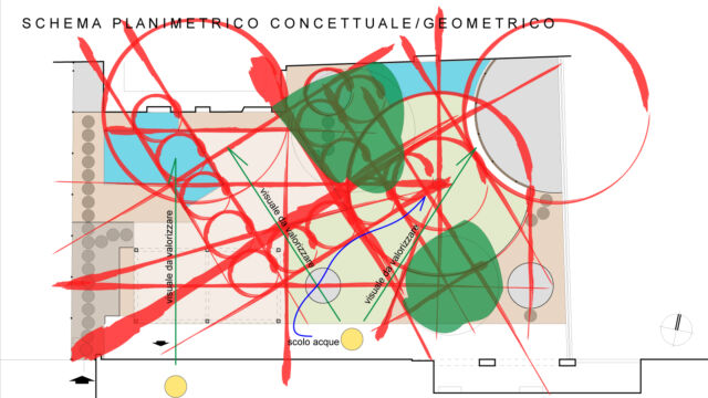 Lo spazio a disposizione è ampio e pianeggiante e la committenza – una famiglia con ragazzi – desidera organizzarlo in modo da poter godere della sua bellezza dalle tante finestre della facciata, ma soprattutto viverlo a pieno nella bella stagione.