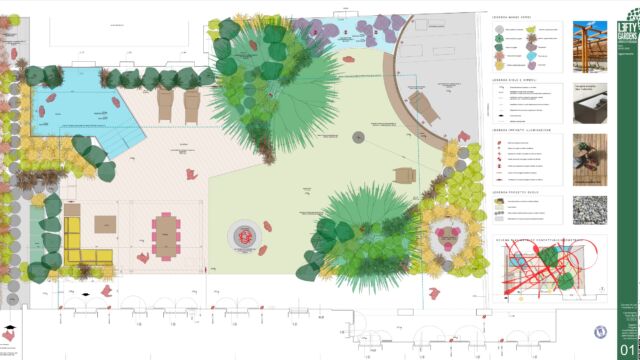 Dopo aver raccolto i desideri e le esigenze e aver sondato i gusti di chi vivrà questo particolare spazio verde, abbiamo proposto la realizzazione di un’area pavimentata dotata di pergola che ospiterà un grande tavolo da pranzo e un comodo living. A ridosso del muro di cinta è prevista la piscina con area relax.