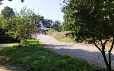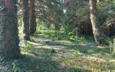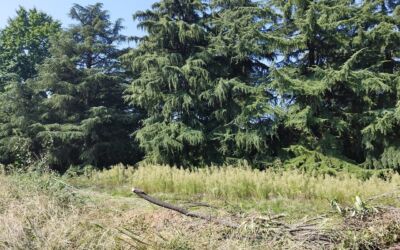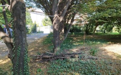 Nella fiaba della Bella Addormentata si narra che il castello cadde insieme a lei nel sonno e fu avvolto da una misteriosa foresta che crebbe indisturbata per cento anni. Il giardino in cui ci troviamo ci ha ricordato un po’ questo classico della letteratura per l’infanzia: attorno a una villa in ristrutturazione si sviluppa un grande parco punteggiato da moltissimi alberi, soprattutto querce, carpini e cedri.