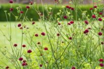 Il prato esistente viene sostituito da una tappezzante fiorita, calpestabile e a basso consumo idrico, mentre il planting si sviluppa intorno a cosmos, verbene, gaure, lavande e altre piante perenni rustiche, dal feeling naturale e dalla fioritura prolungata. Un piccolo giardino a vocazione estiva, con dominanti di colori caldi e stipe e graminacee a conferire morbidezza e movimento; unico vero albero di progetto un melo ornamentale impalcato alto, per dare un po’ di ombra ma anche bacche a disposizione dell’avifauna locale.