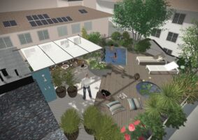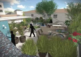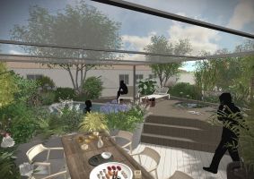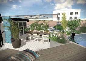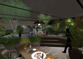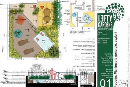 Si inizia a fare l’elenco dei plus necessari: creazione di un gazebo, area feste per cene conviviali, giardino pensile con moltissime piante, allestimento di un’area relax con vasca 3×2 metri che accolga comodamente 4 persone, angolo doccia, piccolo specchio d’acqua per piante acquatiche e piccoli pesci. Insomma, le esigenze sono molteplici.