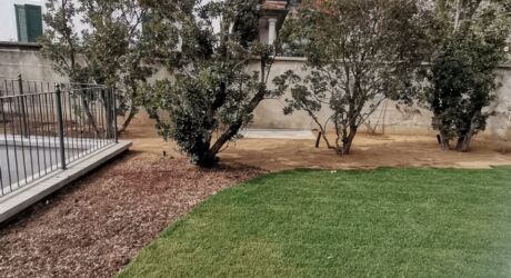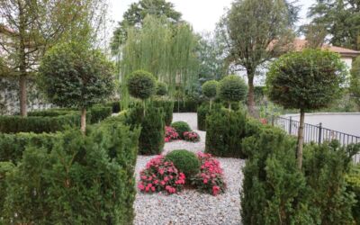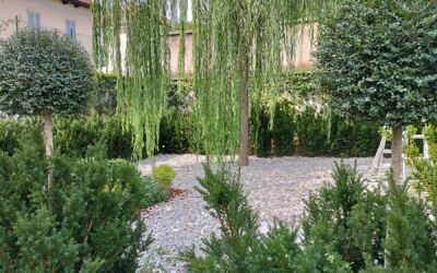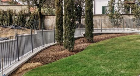 La zona adiacente all’ingresso è stata impreziosita con un giardino all’italiana realizzato con siepi e piante di tasso, uno spazio elegante e tranquillo che ricorda i giardini di delizie delle antiche ville nobiliari.