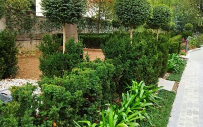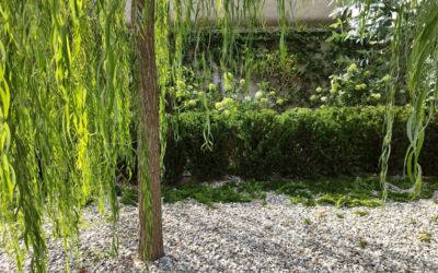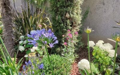 Le piante già presenti davano al giardino un’impronta fortemente mediterranea. Palme, cipressi e corbezzoli svettavano in tutta la loro bellezza e imponenza e abbiamo scelto di costruire attorno a loro un intreccio di arbusti e fioriture di agapanthus, phormium, bossi in forma, gaure, verbene e euforbie. Il giardino è stato dunque arricchito e reso più rigoglioso con l’idea di raggiungere un effetto di vivacità anche nei mesi invernali.