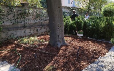 Il giardino era già impostato e vedeva la presenza di un vasto tappeto erboso e di un consistente numero di alberi, tra i quali uno splendido faggio. Le richieste della proprietà sono state: