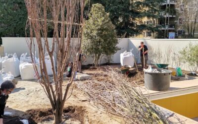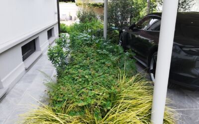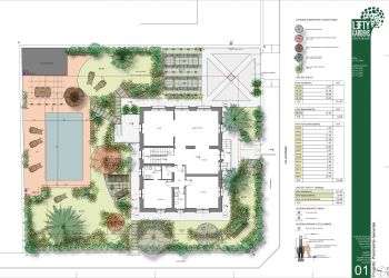 L’impianto verde prevede un consistente inserimento di alberi, siepi, arbusti, essenze rampicanti, masse di erbacee perenni e piante in contenitore; ovviamente non manca una vasta area di tappeto erboso per consentire gioco e libero movimento a grandi e piccoli. Secondo le intenzioni, il nuovo giardino dovrà trasmettere l’idea di un luogo contemporaneo con richiami al giardino classico; in linea con la natura del luogo e con i gusti dei committenti.