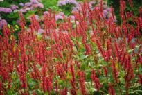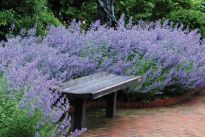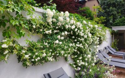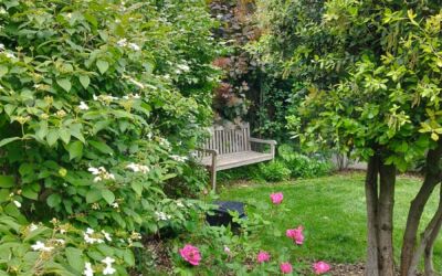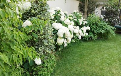 Intorno si sviluppa un planting di arbusti e masse di perenni fiorite in forma libera – peonie, anemoni, persicarie, verbene, agapanti – che si alternano tra la primavera e l’autunno regalando dinamicità al giardino. I colori prediletti sono il bianco e il viola, con tocchi di rosso e giallo.