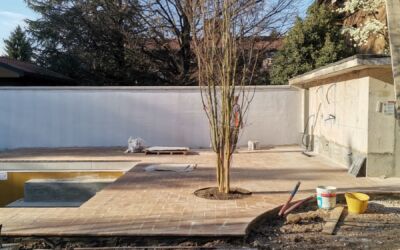 La committenza, una giovane coppia, ci affida l’incarico di elaborare un layout completamente nuovo e suggerisce le prime funzioni; in cima ai desideri una grande piscina con cucina esterna e area feste, poi spazi pensati per il gioco dei figli e un riparo per le automobili. Tutto quello che gravita intorno è una tela bianca ancora da dipingere. Il concept viene elaborato a settembre 2020 dopo un attento studio delle visuali dall’interno delle stanze della casa ma anche tra punti diversi del giardino stesso.